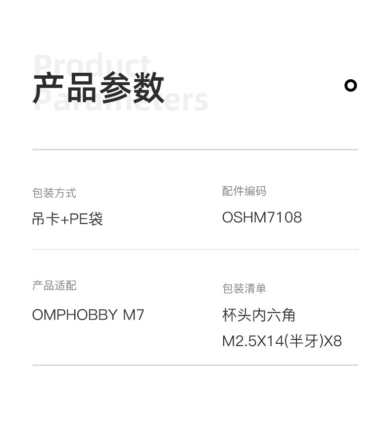 OMPHOBBY 朗宇M7R直升机配件 杯头内六角M2.5X14(半牙) OSHM7108
